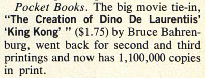 Ace released two paperbacks in conjunction with the release of King Kong.