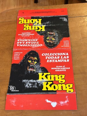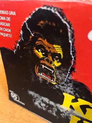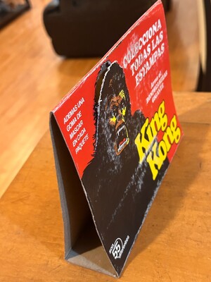 Kong's head and torso with movie title and advertising text in Spanish. Sign
