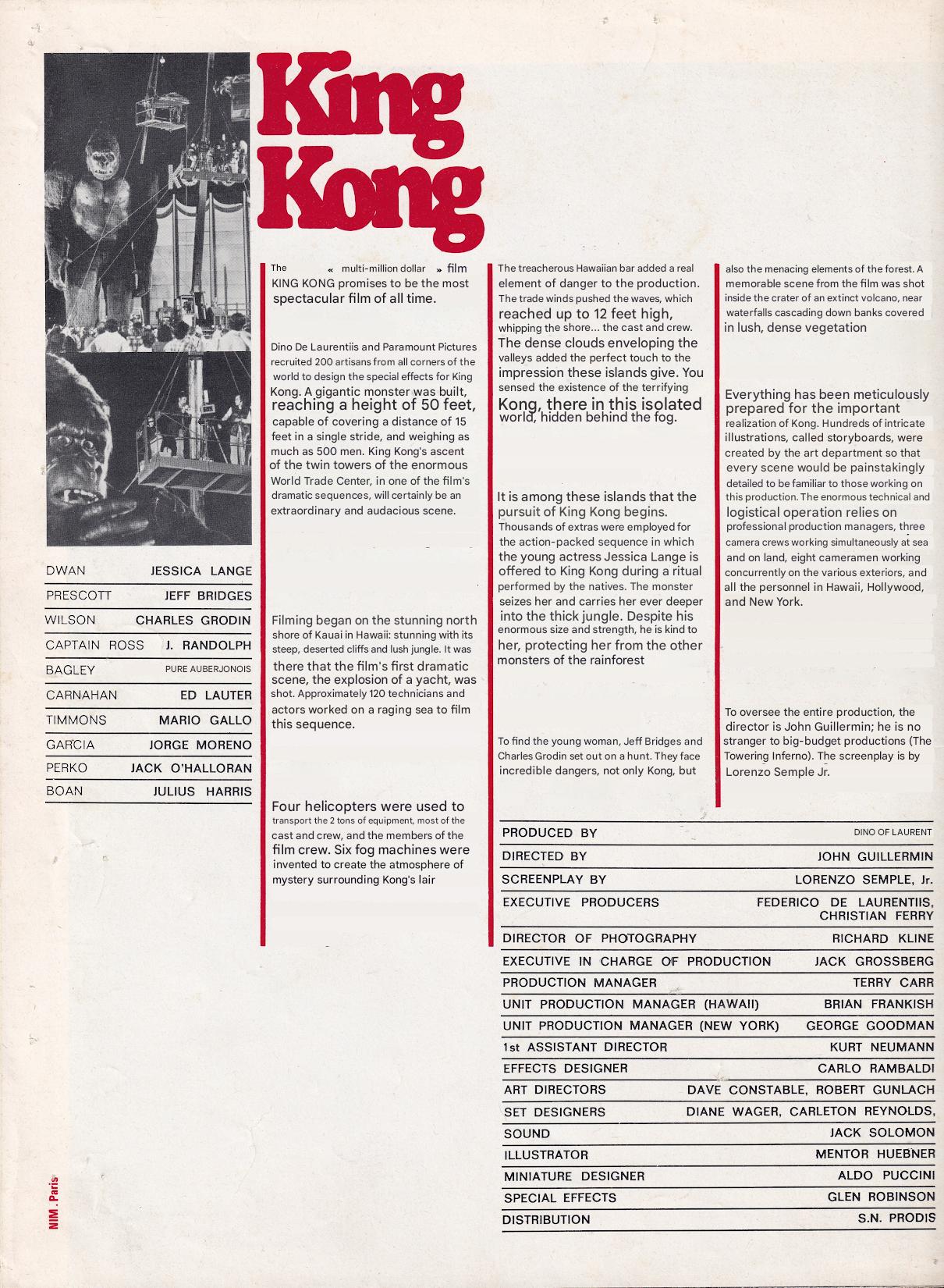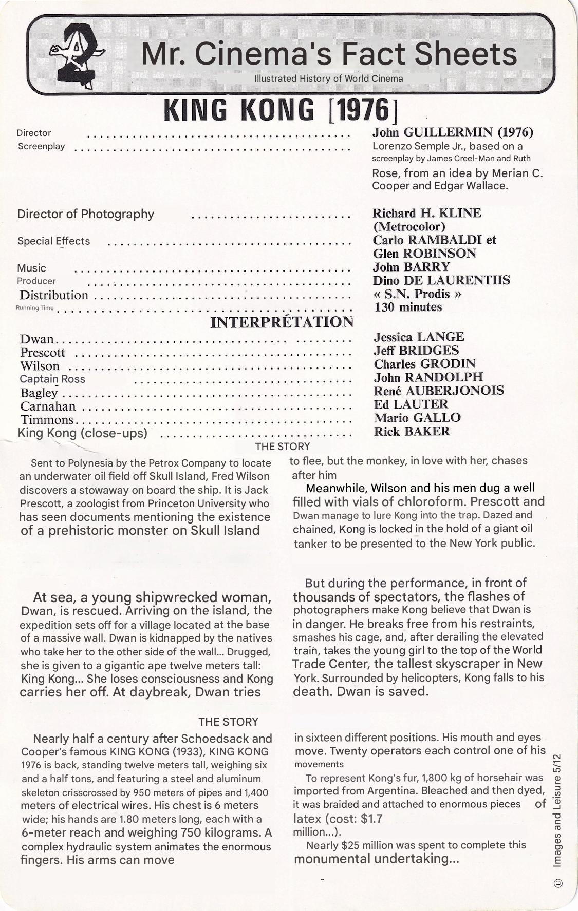 French Les Fiches de Monsieur Cinéma for King Kong (back)