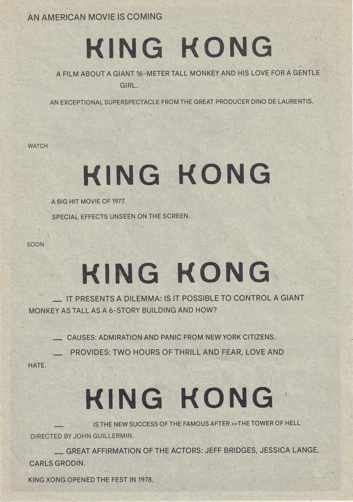 This appears to the source image for a Spanish newspaper ad for King Kong.